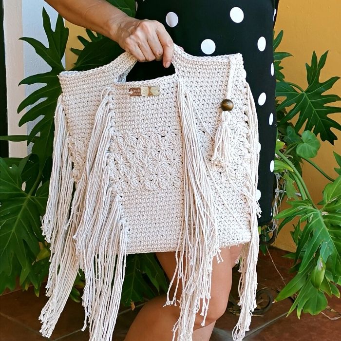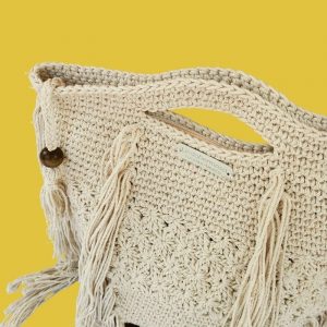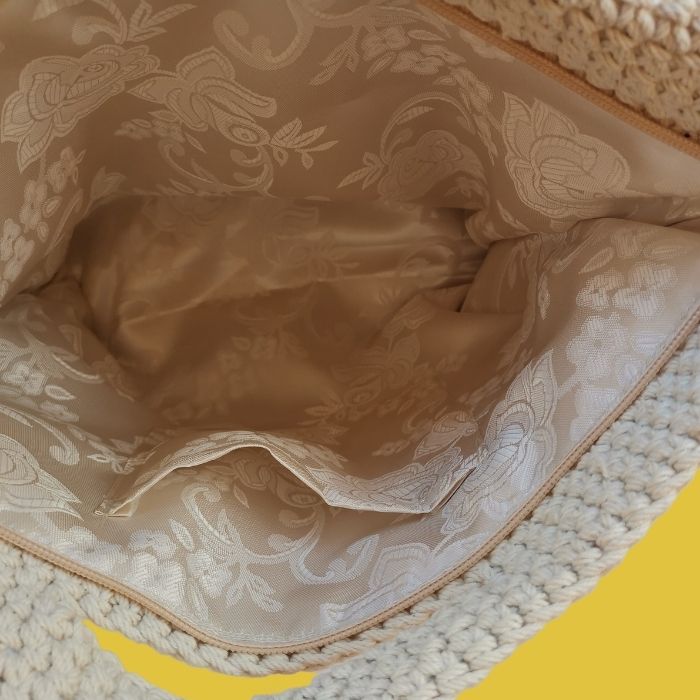 Forrada con tela de seda, cierre reforzado y pompón con detalle en madera.