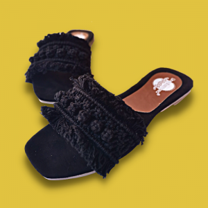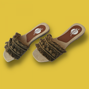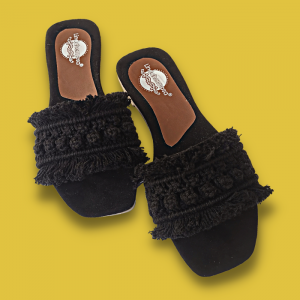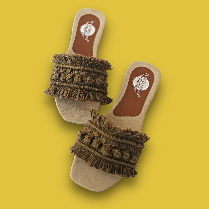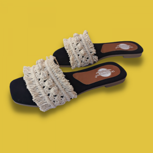 Sandalias tejidas a mano con macramé. Plantilla antiderrapante y suela con tacón ligero.